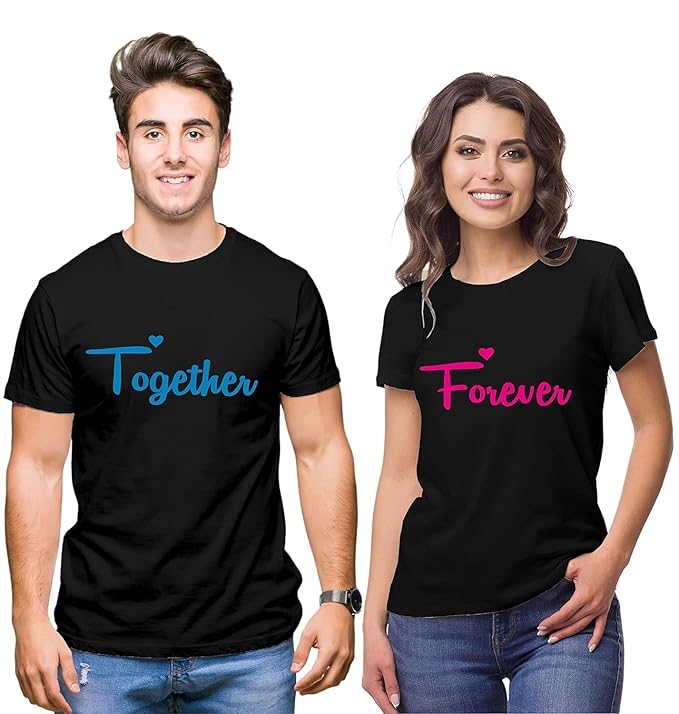 The colors of these couple t-shirts are typically available in a range of options, from classic black and white to more vibrant shades like pastel pink, blue, or red, allowing couples to choose the combination that best suits their personality and style. The designs are often screen-printed or digitally printed with vibrant, long-lasting inks, ensuring the prints stay clear and bold wash after wash.
