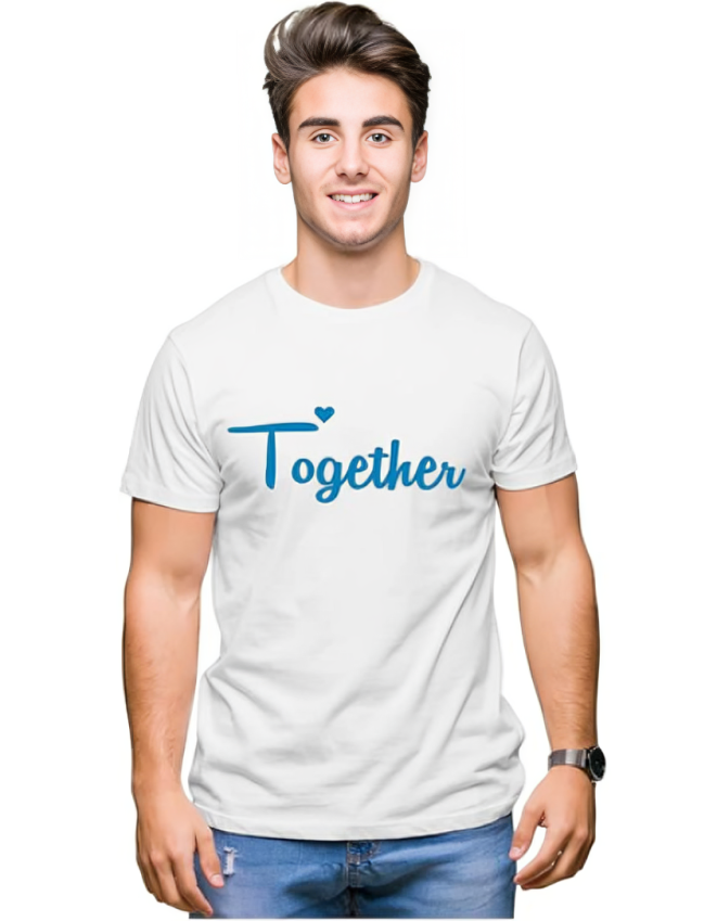 Crafted from soft, high-quality cotton or a cotton-blend fabric, these t-shirts promise comfort and durability, making them perfect for everyday wear. The fabric is lightweight and breathable, ensuring that you stay cool and comfortable, whether you’re out on a casual date, spending time with your partner, or taking pictures to remember the moment.