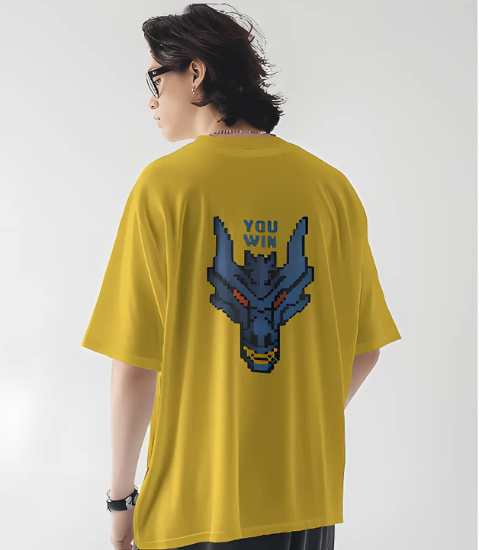 Unleash your inner gamer with the Pixel Dragon  Oversized T-Shirt. Featuring a bold pixelated dragon graphic and a victory-inspired “YOU WIN” text, this tee is perfect for those who love retro gaming aesthetics. Designed with premium cotton, it offers ultimate comfort and a stylish oversized fit, making it an ideal choice for casual wear, gaming sessions, or street-style looks.